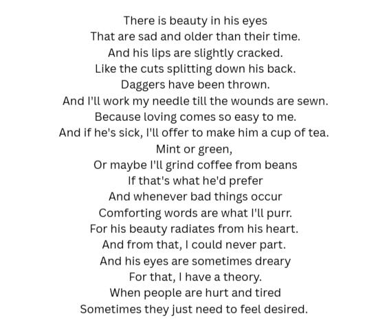 Hue is actively looking for young writers who want to share their voice through literature and poetry. Whether it’s a short story, a personal essay, or a powerful poem, we welcome all forms of written expression. Submissions will be featured in our Digital Gallery, shared on our Instagram to highlight your work, and considered for inclusion in our upcoming print magazine — giving your words the chance to reach a wider audience both online and in physical form. If you’ve got something to say, we want to help you share it with the world.Photo: Submission from anonymous